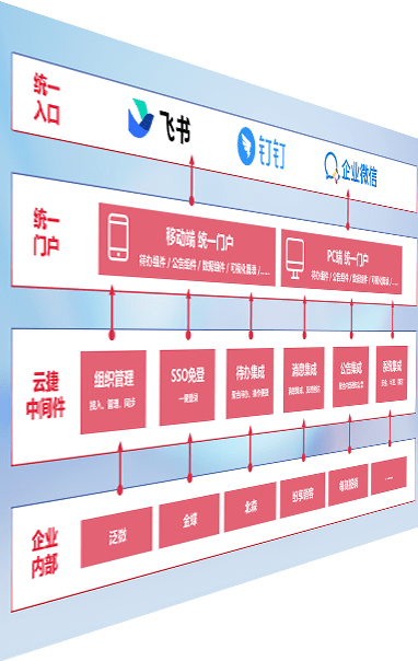 对协作平台提供支持服务,,支持企业应用与协作平台对接,,,,包含组织同步、、消息集成、、待办集成等。。。支持目前主流的协作平台:钉钉、、、企微和飞书。。